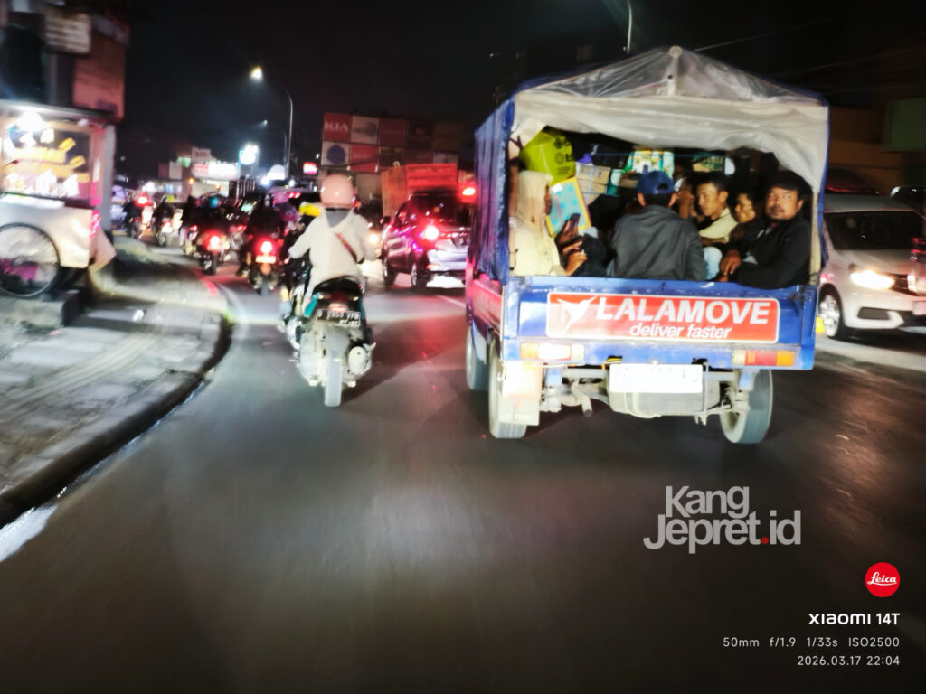 KANGJEPRET.ID — Arus mudik Lebaran 2026 mulai menunjukkan peningkatan signifikan di jalur timur Bandung, khususnya ruas Cibiru hingga Cileunyi, pada Rabu (17/3/2026) malam. Pantauan di lapangan menunjukkan lonjakan volume kendaraan, didominasi pemotor serta kendaraan roda empat yang bergerak menuju arah timur Jawa Barat dan Jawa Tengah.