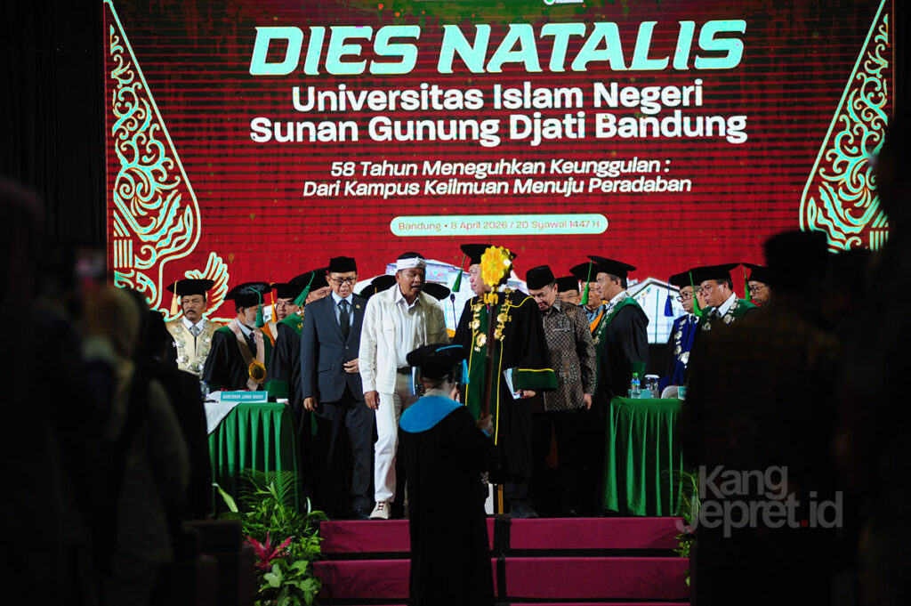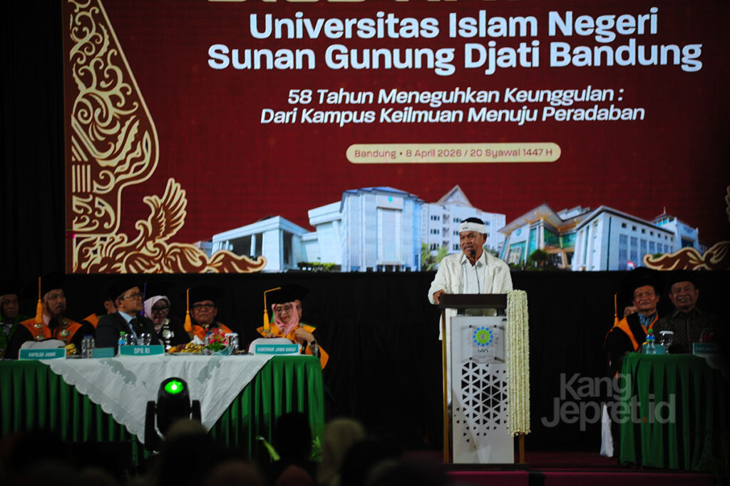 KANGJEPRET.ID — Gubernur Jawa Barat Dedi Mulyadi menyampaikan ucapan selamat atas peringatan Dies Natalis ke-58 Universitas Islam Negeri (UIN) Sunan Gunung Djati Bandung. Hal tersebut disampaikannya dalam Sidang Senat Terbuka yang digelar di Gedung Aula Anwar Musaddad, Kota Bandung, Rabu (8/4/2026).