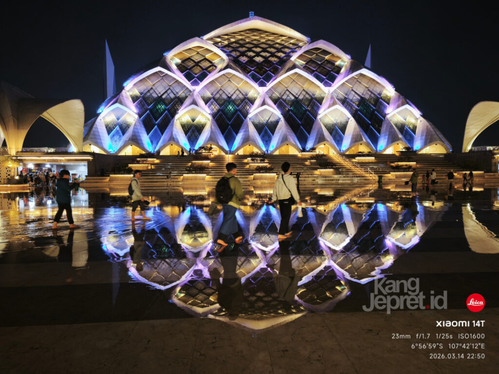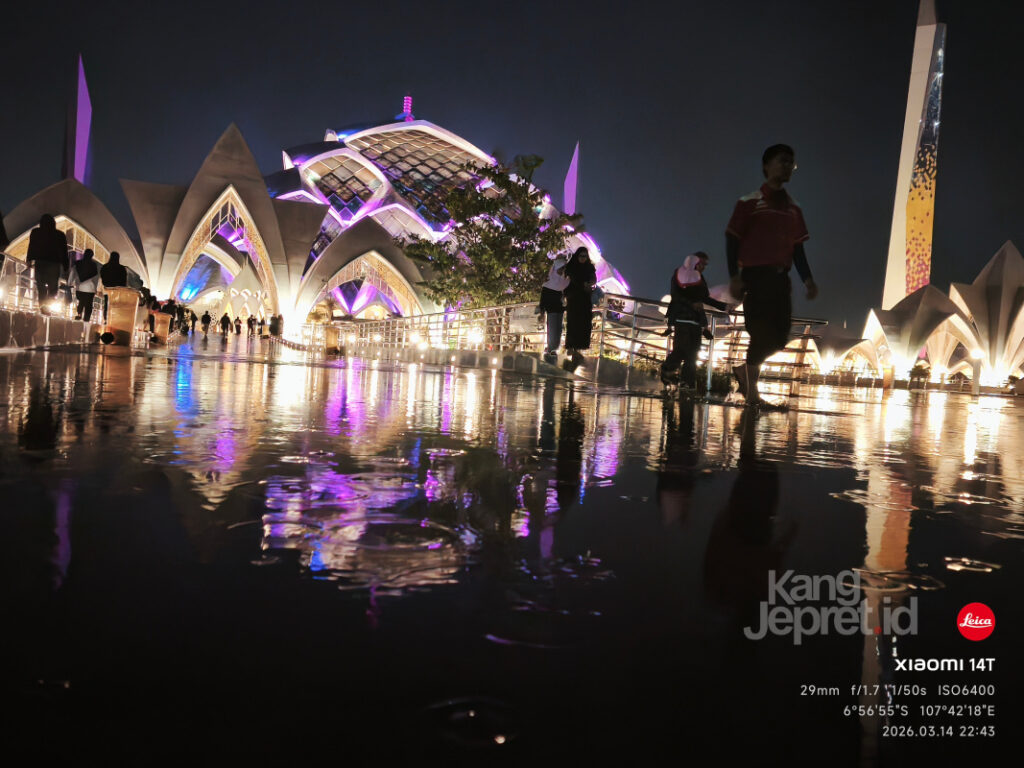 Hunting foto malam di Masjid Al Jabbar selepas hujan bukan hanya soal berburu gambar, tetapi juga menikmati jeda yang tenang sebelum malam i’tikaf dimulai. Di antara gemerlap lampu dan pantulan air hujan, kamera ponsel sederhana pun mampu menangkap pesona masjid yang terasa megah sekaligus khusyuk. Sebuah momen singkat yang menghadirkan keindahan visual sekaligus ketenangan batin.